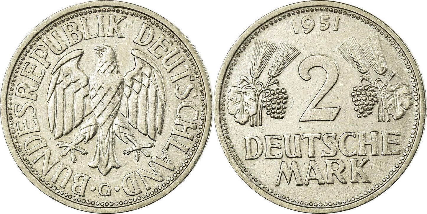 Information and value for the 1951 D Silver 5 Marks from Germany. In this page you can also find various offers for different grades for sale.. Deutsche Mark : System: Mark (Federal Rep.) 100 Pfennig = 1 Mark Mint marks: A - Berlin, Germany D - Munich, Germany F - Stuttgart, Germany G - Karlsruhe, Germany J - Hamburg, Germany : Item Notes.