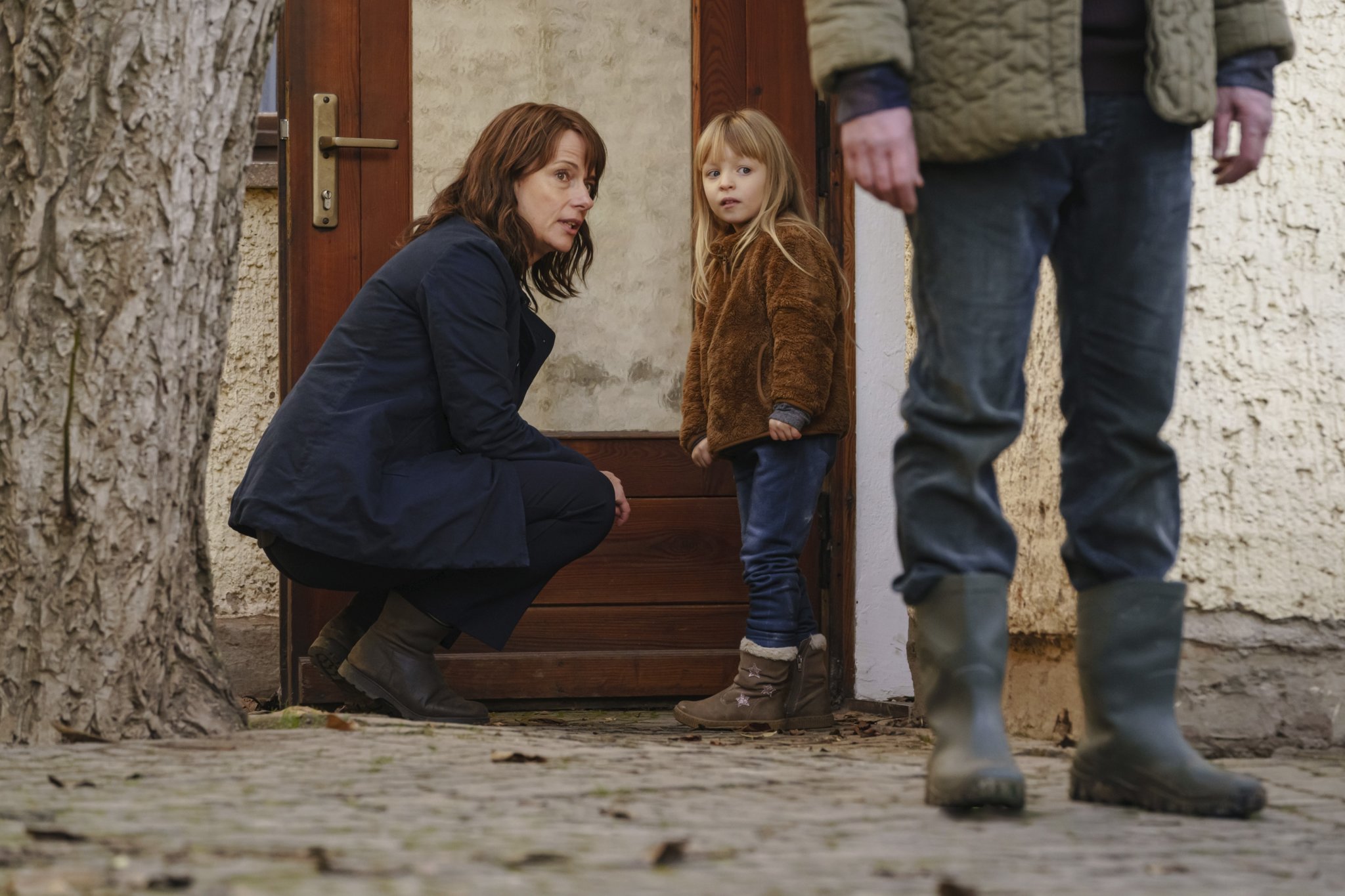Claudia Michelsen spielt Hauptkommissarin Doreen Brasch. Der Spürhund macht Marie Angst, Brasch beruhigt sie, Werner lässt Lobrecht und Lemp gewähren. | Bild: MDR/filmpool fiction / Stefan.
