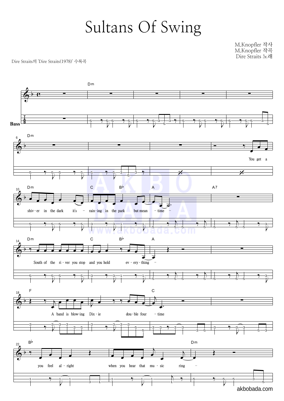 Dire Straits Sultans of swing 악보 악보바다