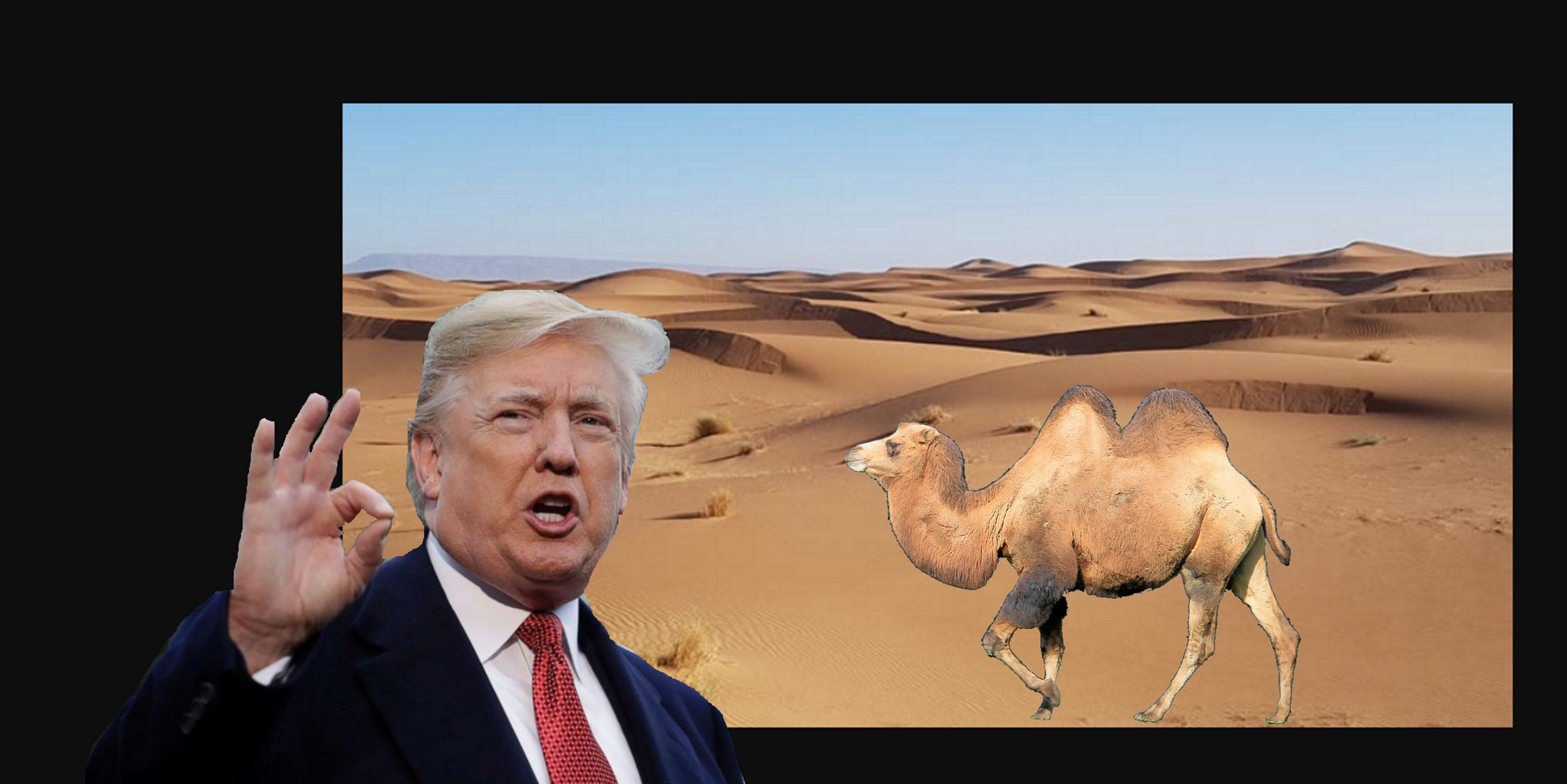 Karrikatur Trumpeltier Eher geht ein Kamel durch ein Nadelöhr, als Toonsup