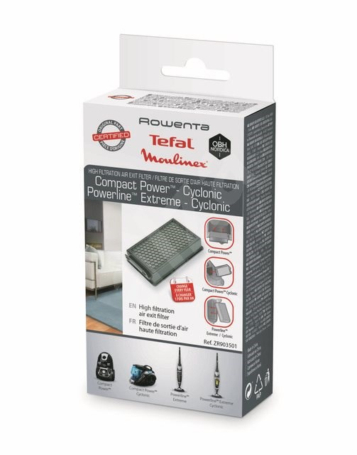 Rowenta ZR005901 Filter. Fits Compact Power Cyclonic Vacuum Cleaners (RO37xx) Easy to replace both filters at any time. The filter system removes 99.98% of dust absorbed (only one escapes from 5000 dust particles). The filter cartridge and foam filter must be cleaned monthly. The foam filter is washable.