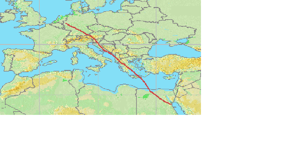 Wie sieht die Flugroute von Düsseldorf nach Hurghada (Ägypten) aus?