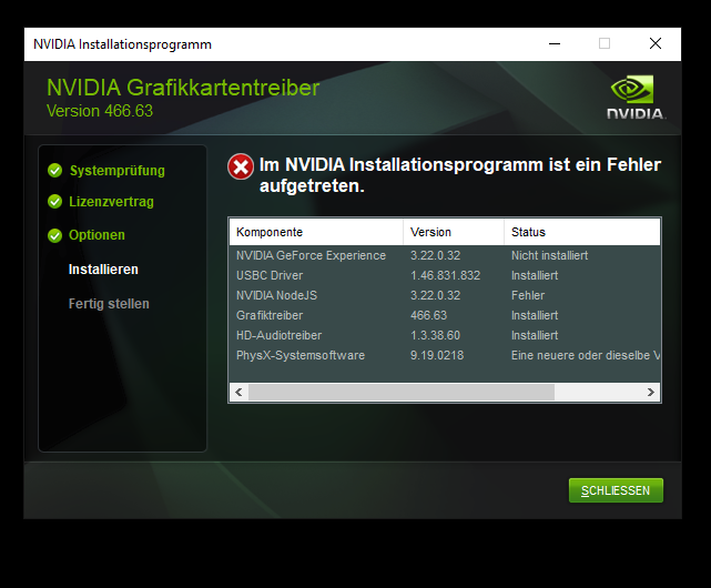 Im NVIDIAInstallationsprogramm ist ein Fehler aufgetreten? Technik, PC)