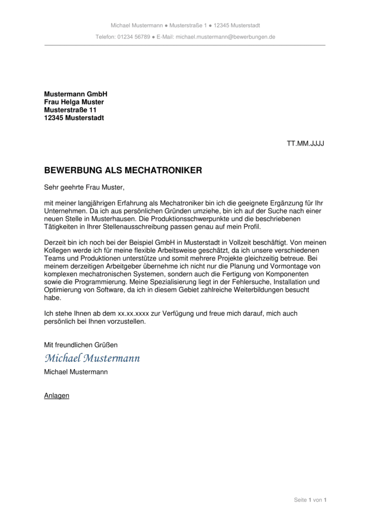 Damit du den Ausbildungsplatz oder die Stelle bekommst, findest du hier und im kurzen Video kostenlose Muster und die besten Tipps für deine Bewerbung als Mechatroniker! Inhaltsübersicht. Bewerbung als Mechatroniker — Vorlagen für Anschreiben und Lebenslauf. Du hast eine passende Stelle als Mechatroniker/-in gefunden?