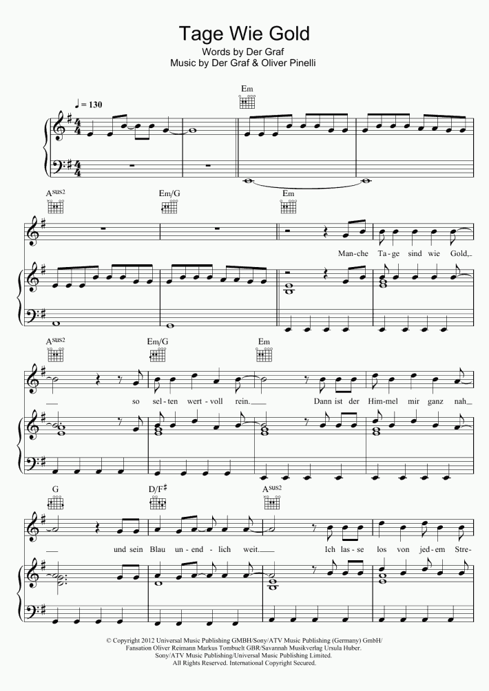 Tage Wie Gold Piano Sheet Music OnlinePianist
