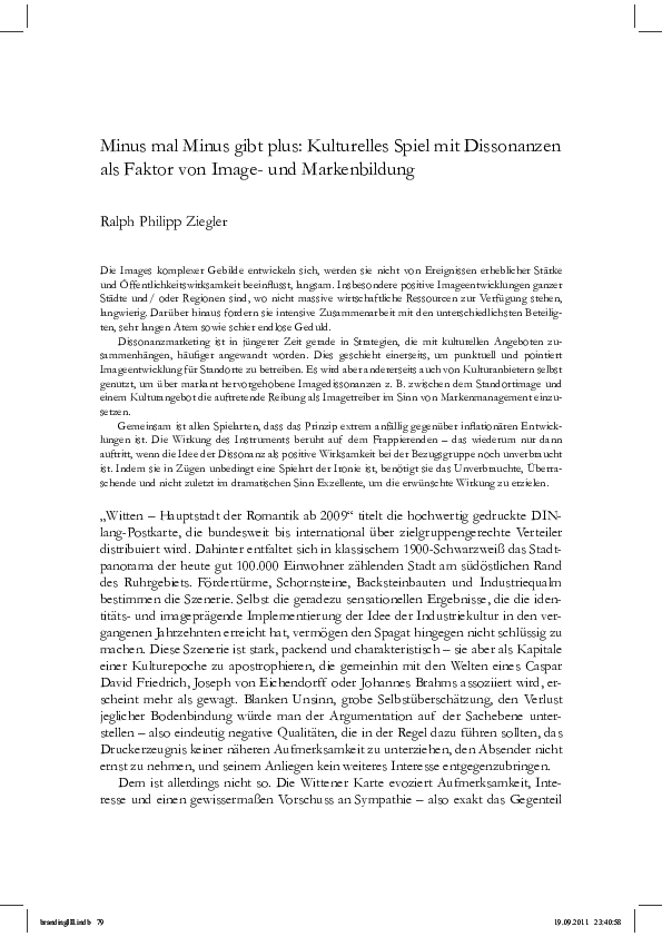 (PDF) Minus mal Minus gibt plus Kulturelles Spiel mit Dissonanzen als Faktor von Imageund