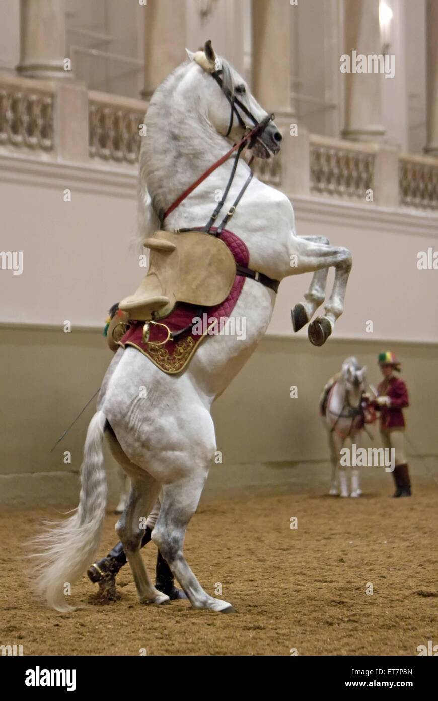Lippizaner (Equus Przewalskii F. Caballus), in der Spanische Hofreitschule, Auf Den Hinterbeinen