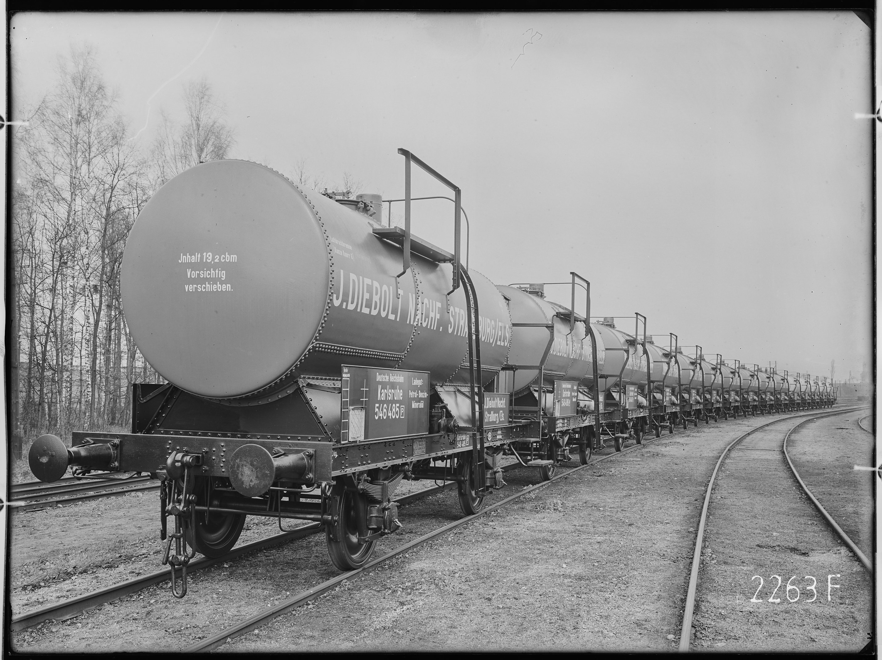 Fotografie zweiachsiger Kesselwagen mit Bremserhaus, Privatwagen für Firma J. Diebolt Nachf