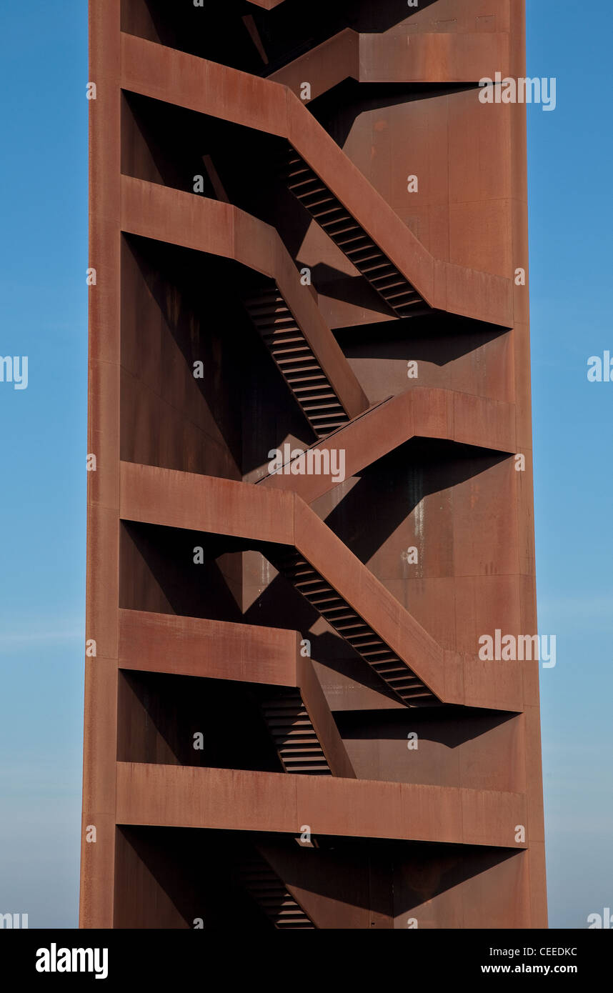 Rostiger Nagel - Aussichtsturm im Lausitzer Seenland. Der Aussichtsturm Rostiger Nagel ist eine aus Corten-Stahl errichtete Landmarke. Der Rostige Nagel, welcher sich am Sedlitzer See befindet, ragt 30 Meter in die Höhe. Er erstrahlt in einer rostroten Patina und soll an die industrielle Entstehungsgeschichte des Lausitzer Seenlandes erinnern.