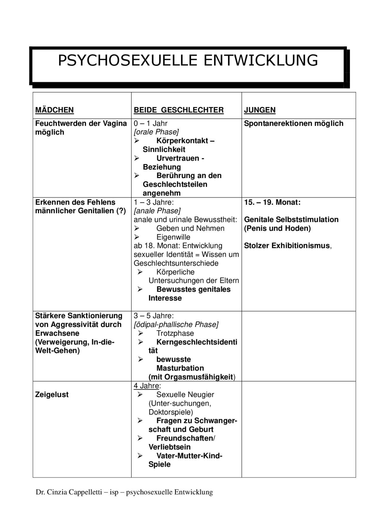 Psychosexuelle Entwicklung im Mädchen und Jungen Grafiken und Mindmaps Kinderpsychologie Docsity