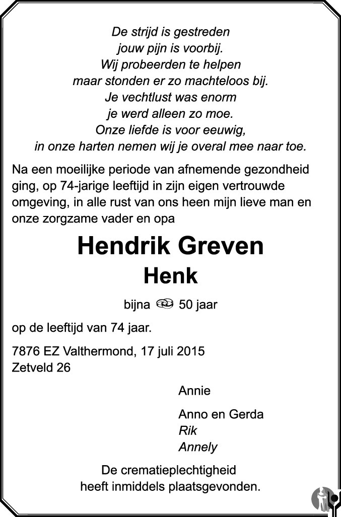Hendrik Henk Greven 17072015 overlijdensbericht en condoleances Mensenlinq.nl