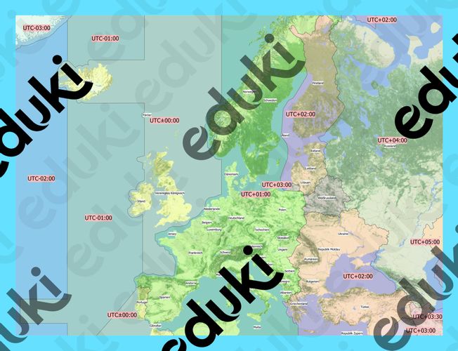 Europakarte. UTC Zeitzonen in Europa Unterrichtsmaterial im Fach Erdkunde