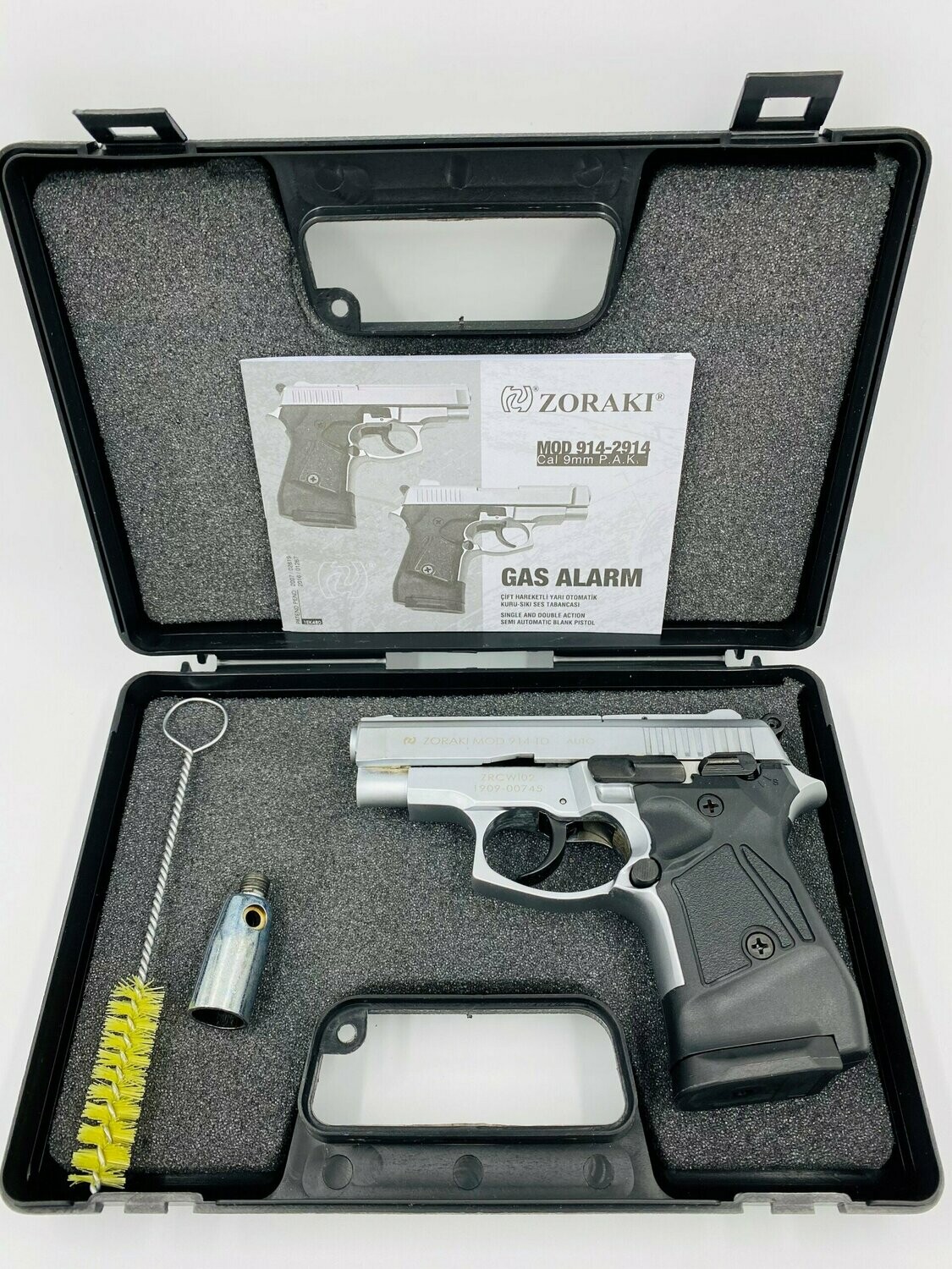 Zoraki Front Fire Satin M914 Full Auto 9mm Blank Gun Machine Pistol. $114.95. Shipping calculated at checkout. Quantity. Add to Cart. Our Zoraki 914 model Semi Automatic features smooth slide action and realistic weight and feel that make it a great training or theatrical replica. It fires loud 9mm P.A.K. blanks as fast as you can pull the.